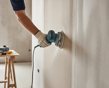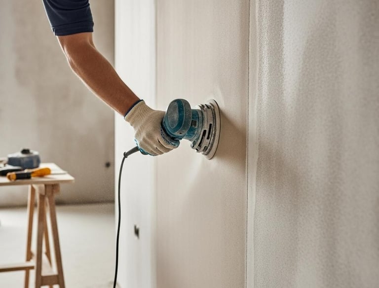 Ponçage pour obtenir une surface lisse prête à peindre ou à tapisser.